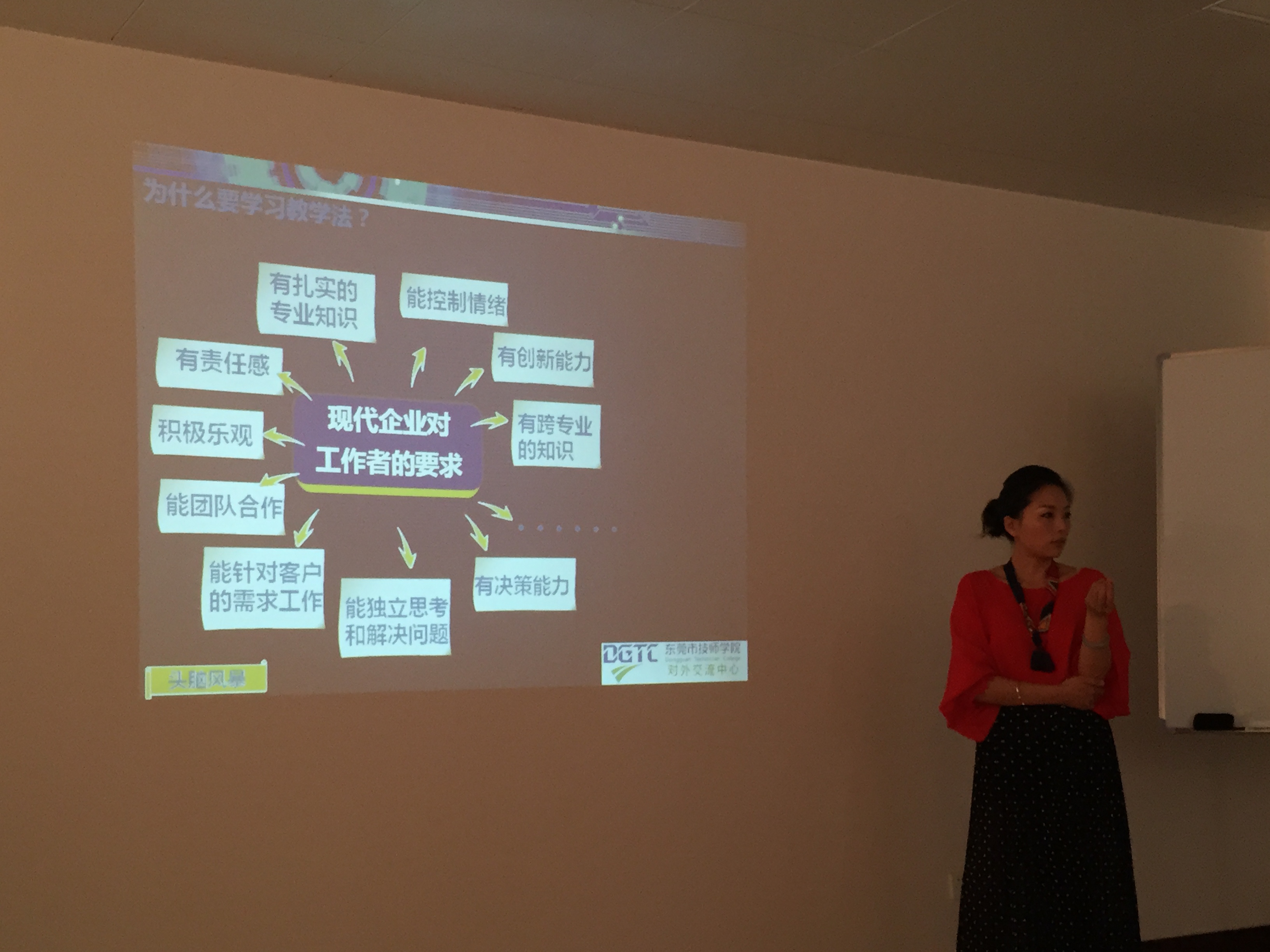 本次“課改”培訓(xùn)針對(duì)中德合作班的機(jī)電儀一體化專業(yè),邀請(qǐng)了東莞市技師學(xué)院對(duì)外交流中心熊慶主任主講。